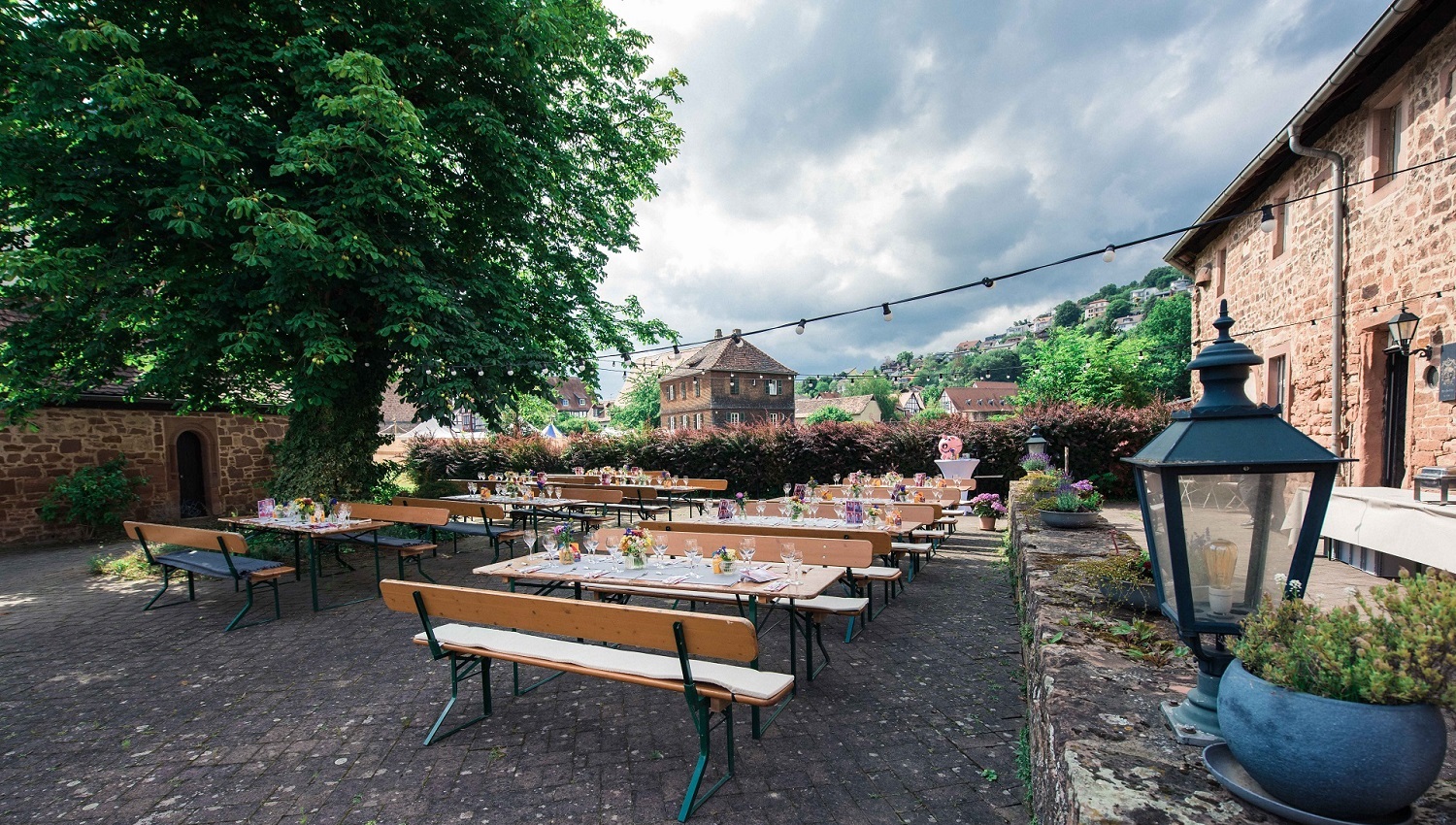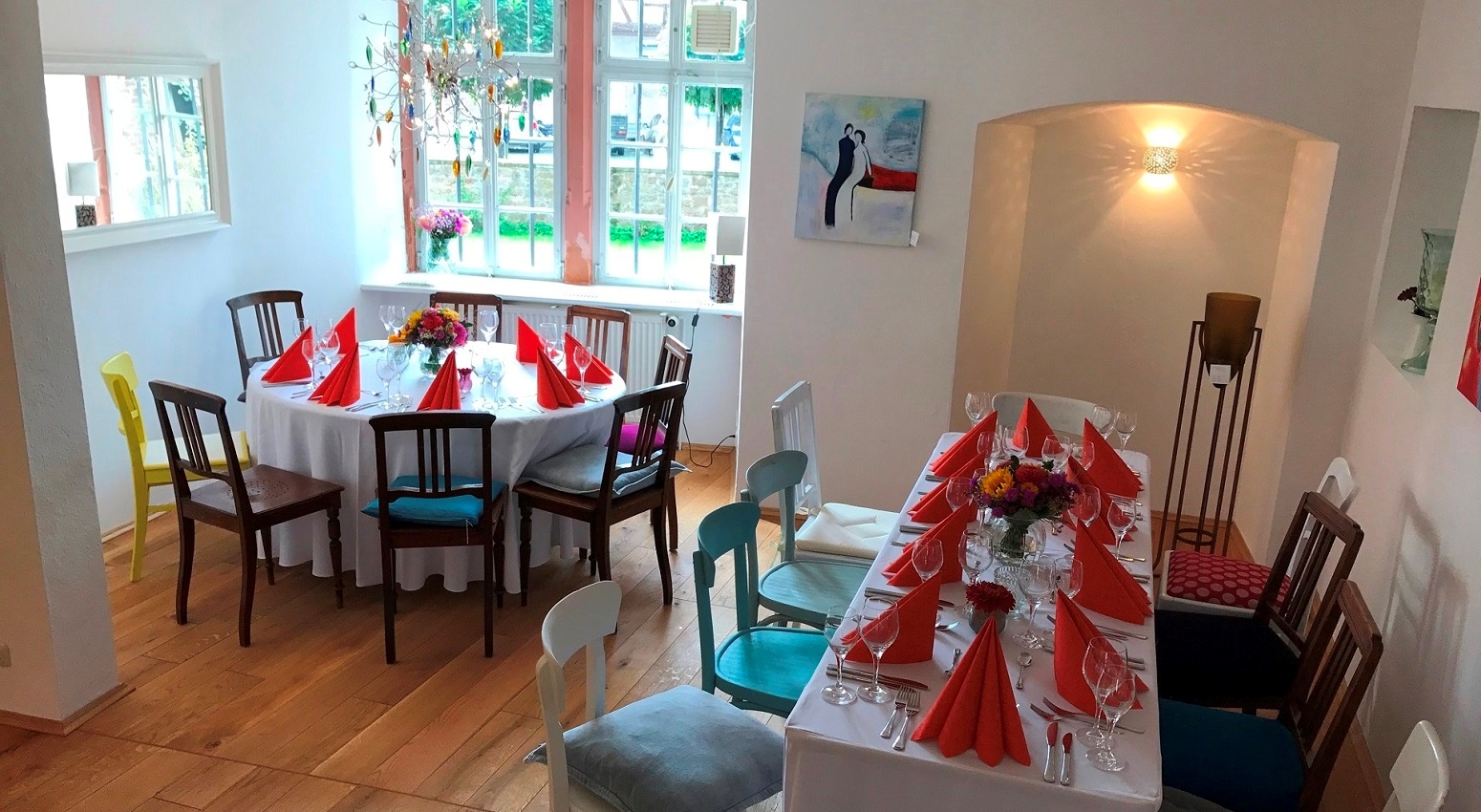 Genießen Sie das einmalige Ambiente im Schlosscafé Büdingen. Die herrliche Schlossterrasse eignet sich ideal für Empfänge oder ein BBQ unter freiem Himmel. Sie sind herzlich eingeladen, die besondere Atmosphäre dieses alten Besitzes mit seiner reichen Geschichte zu genießen. Ob Hochzeit, Geburtstag oder Firmenfeier, das wunderschöne Schlosscafé kann exklusiv für Veranstaltungen bis zu 50 Personen angemietet werden. Übernachtungsmöglichkeiten finden Sie direkt vor Ort im Schloss-Hotel, welches über acht Doppelzimmer, fünf Einzelzimmer und drei Suiten verfügt. Lassen Sie sich verzaubern vom traumhaften Ambiente eines romantischen Schlosses.